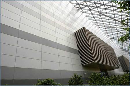 2、鋁板幕墻工藝性好。采用先加工后噴漆工藝,鋁板可加工成平面、弧型和球面等各種復(fù)雜幾何形狀。